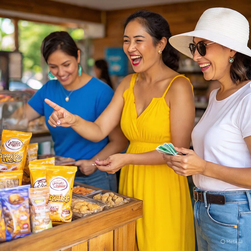 Kita membeli jajan di toko , lalu kita membayar yang membayar somaya,lalu kita langsung ketempat anak laki layangan tadi, kita mengasihkan jajan itu ke anak laki untuk menyemil lalu kita berpamitan untuk bermain di tempat bermain